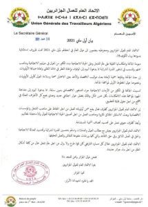 وجاء في البيان، أن الاتحاد يعيش مع مطالب العمال والعاملات وآمالهم بتحسين القدرة الشرائية وتجسيد العدالة الاجتماعية والحق بالعمل اللائق والتقاعد.