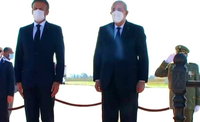 و بعد وصول الرئيس الفرنسي إلى الجزائر، كان في استقباله بمطار هواري بومدين الدولي، رئيس الجمهورية، عبد المجيد تبون. وتدوم زيارة العمل التي يقوم بها ماكرون إلى الجزائر 3 أيام مرفوقا بوفد وزاري.