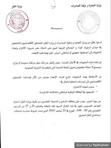 وفي هذا الصدد ،أكد البيان على وجوب وكلاء السفن و الحمولة المعتمدين من طرف وزارة النقل احترام القواعد النصوص عليها في هذا الشأن لاسيما تلك المتعلقة بالمادتين 26 و 27 من المرسوم التنفيذي رقم 20-348، المؤرخ في 23 نوفمبر 2020 الذي يحدد شروط ممارسة نشاطات مساعدي النقل البحري.