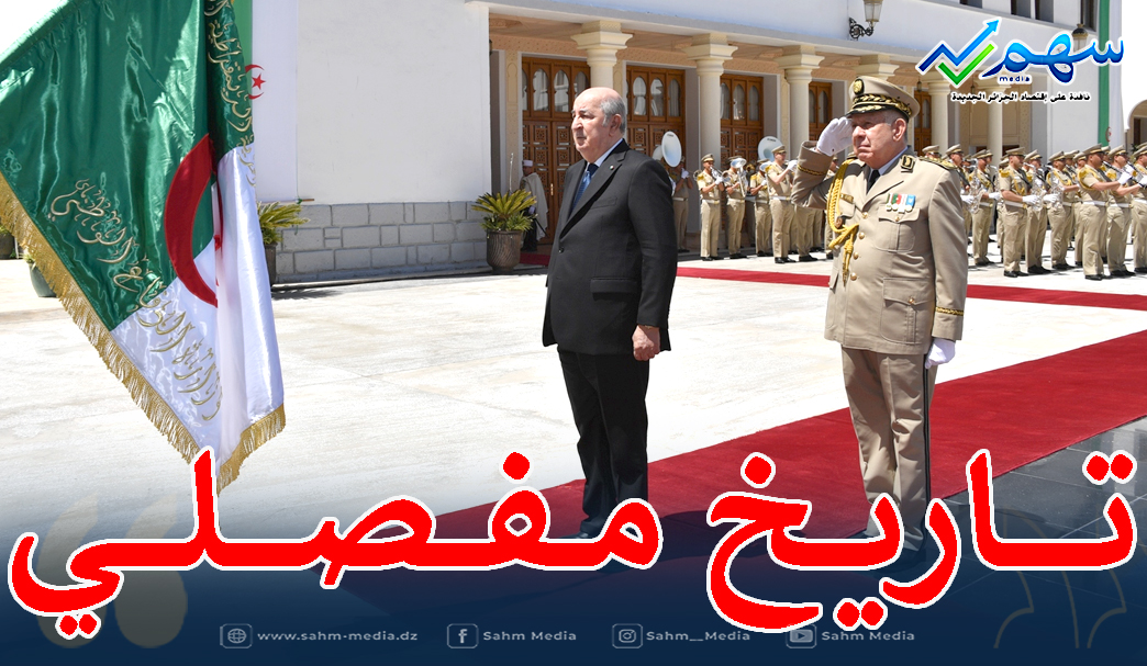 و”بعد الاستماع للنشيد الوطني, وتقديم التشريفات العسكرية, له, من طرف تشكيلات من مختلف قوات الجيش الوطني الشعبي, حيا السيد رئيس الجمهورية مستقبليه, السادة قائد الحرس الجمهوري والأمين العام لوزارة الدفاع الوطني وقادة القوات والدرك الوطني وقائد الناحية العسكرية الأولى والمراقب العام للجيش ورؤساء الدوائر بوزارة الدفاع الوطني وأركان الجيش الوطني الشعبي”.