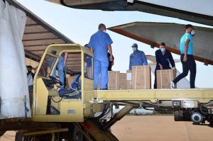 حطت مساء أمس السبت طائرة نقل عسكرية تابعة للجيش الوطني الشعبي بالقاعدة الجوية بوفاريك بالناحية العسكرية الأولى محملة بشحنة جديدة تقدر بـ(750) جهاز لتكثيف الأكسجين.