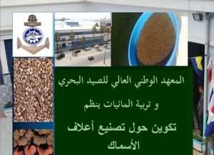 ينظم المعهد الوطني العالي للصيد البحري و تربية المائيات تكوينا حسب الطلب في تصنيع أعلاف الأسماك و ذلك من 11 جويلية 2021 إلى 12 جويلية